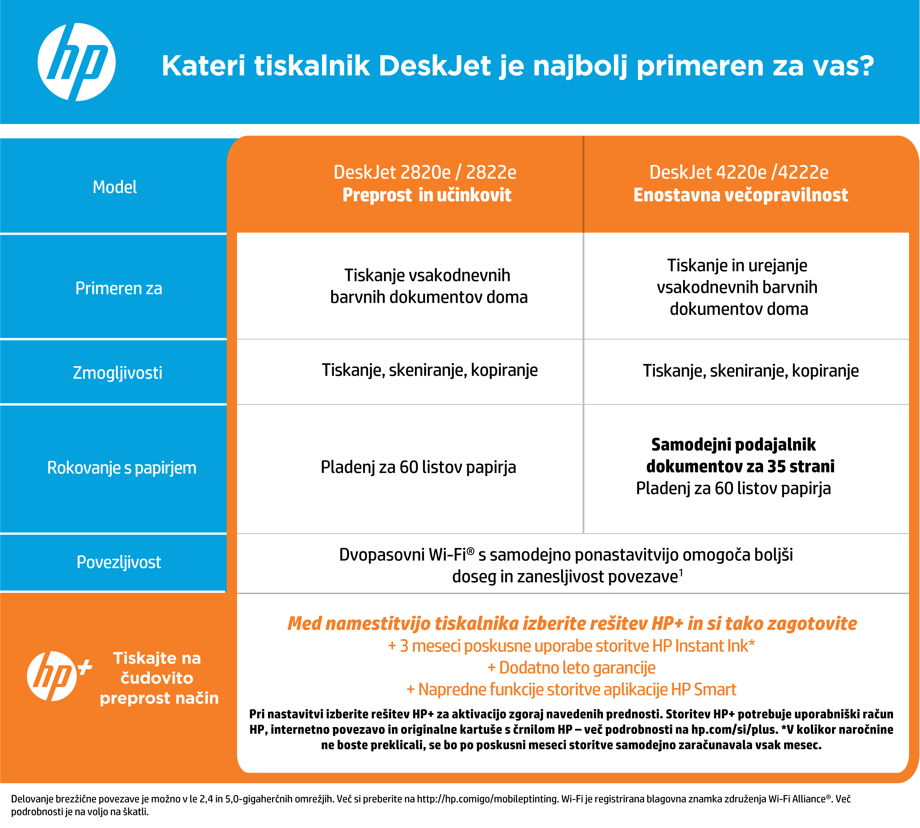 - Med namestitvijo tiskalnika izberite rešitev HP+ in si tako zagotovite brezplačne mesece poskusne uporabe storitve HP Instant Ink1 ter dodatno leto HP garancije. Če storitve Instant Ink ne boste preklicali, vam bomo po zaključku poskusnog obdobja pričeli obračunavati mesečne stroške.